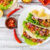Bramborový salát s čerstvým salátem a drobenkou z klobásy