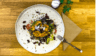 Amikor az édesburgonya megsült, a szeleteket a salátához adjuk, megöntözzük az öntettel, hozzákeverjük a finomra vágott petrezselymet, néhány citromszeletet, végül megszórjuk pirított napraforgómaggal.