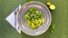 Egy kis tálban elkeverjük az olívaolajat, a citromlevet, cukrot, mustárt és ízlés szerint sózzuk – ez lesz az öntetünk.